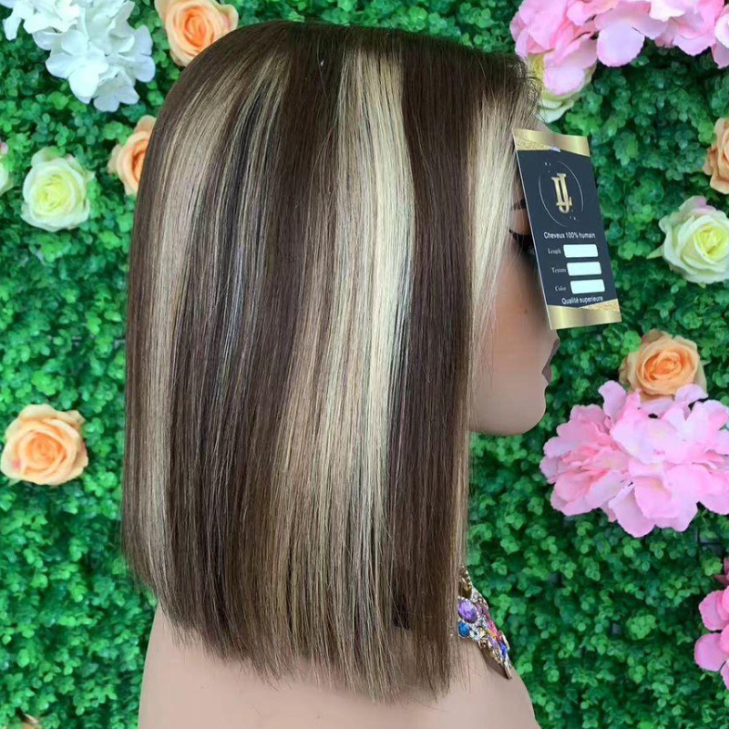 Perruque Gluless Bob 100% Virgin Hair couleur Marron Clair chocolat Blond Miel Highlight Perruque Sans Colle Lisse
